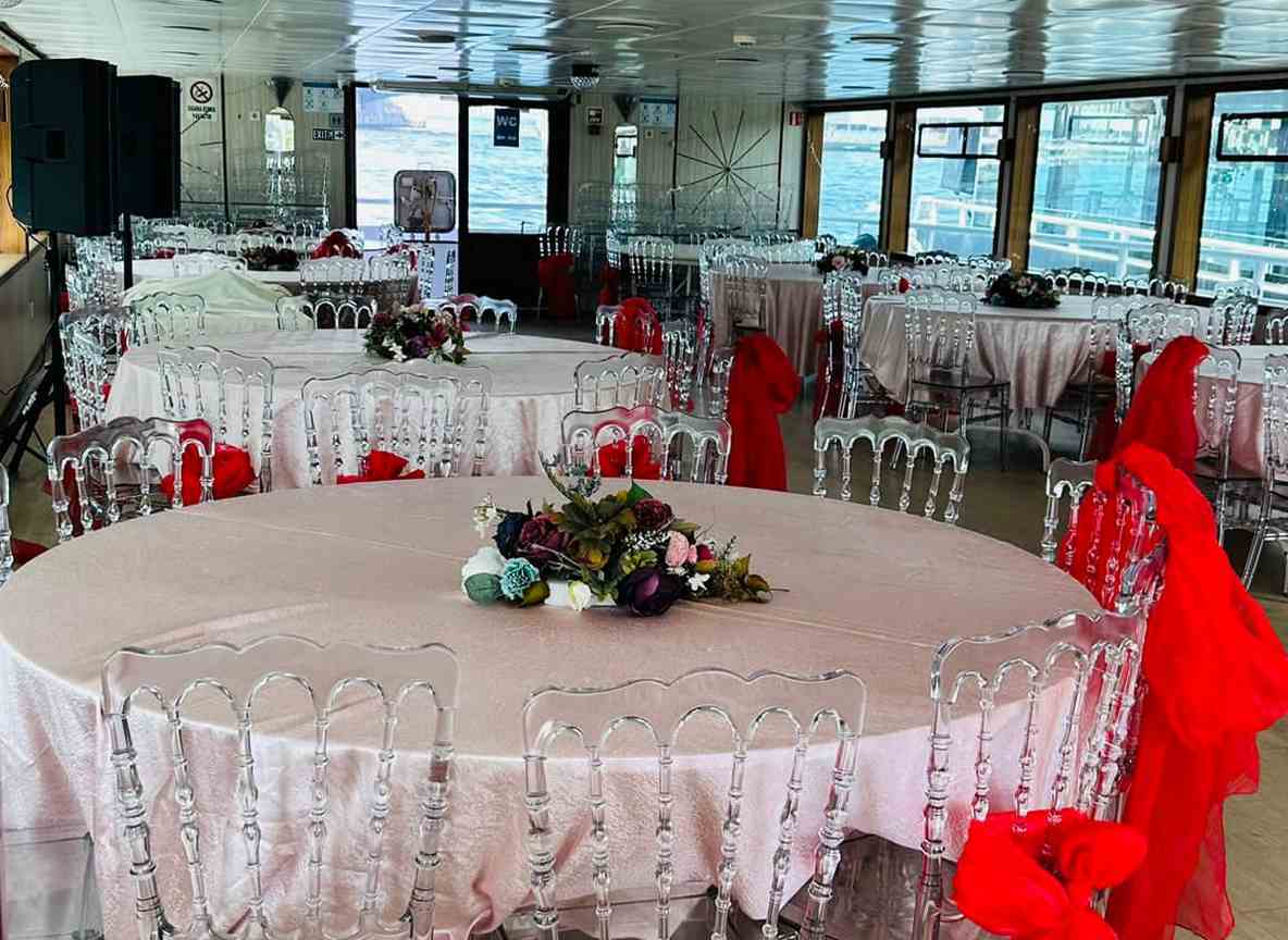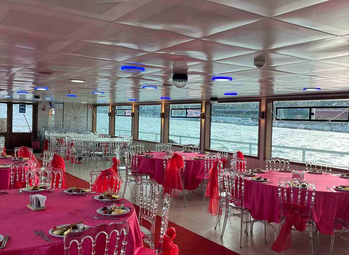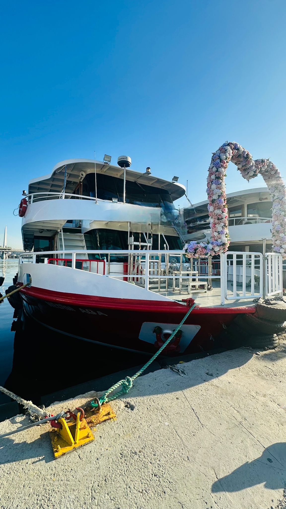 في قلب مضيق البوسفور بإسطنبول، نُقدم لكم قاربنا الفاخر والمريح، الذي يتسع لـ 100 شخص، لإقامة حفل زفافكم الرائع الذي لطالما حلمتم به. 🛥️✨